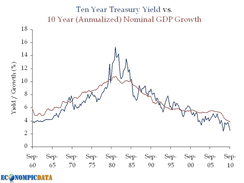 La siguiente figura de Econompicdata es informativa, pero habría sido útil compararla con la que se obtiene al graficar las tasas reales contra el crecimiento real.