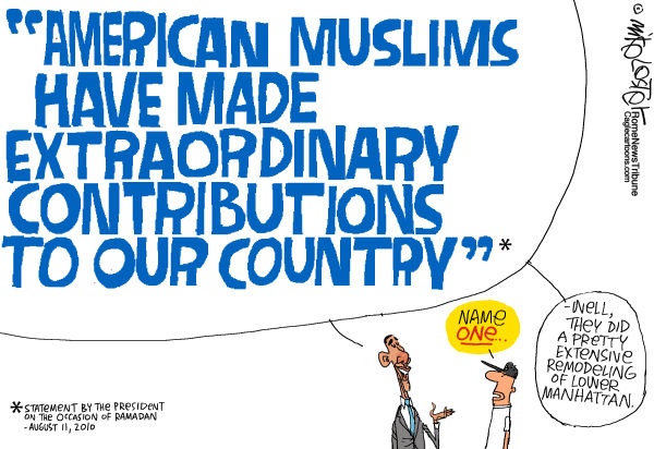 Las personas pueden ser ingeniosas y ofensivas al mismo tiempo. El chiste siguiente es implícitamente racista pero tiene la virtud de mostrar la hipocresía de los discursos oficiales. Las contribuciones de los musulmanes a los Estados Unidos son las contribuciones normales –y no extraordinarias– de cualquier grupo compuesto por personas buenas y malas, con maneras de pensar e intereses distintos, caracterizados sólo por pertenecer a una religión.