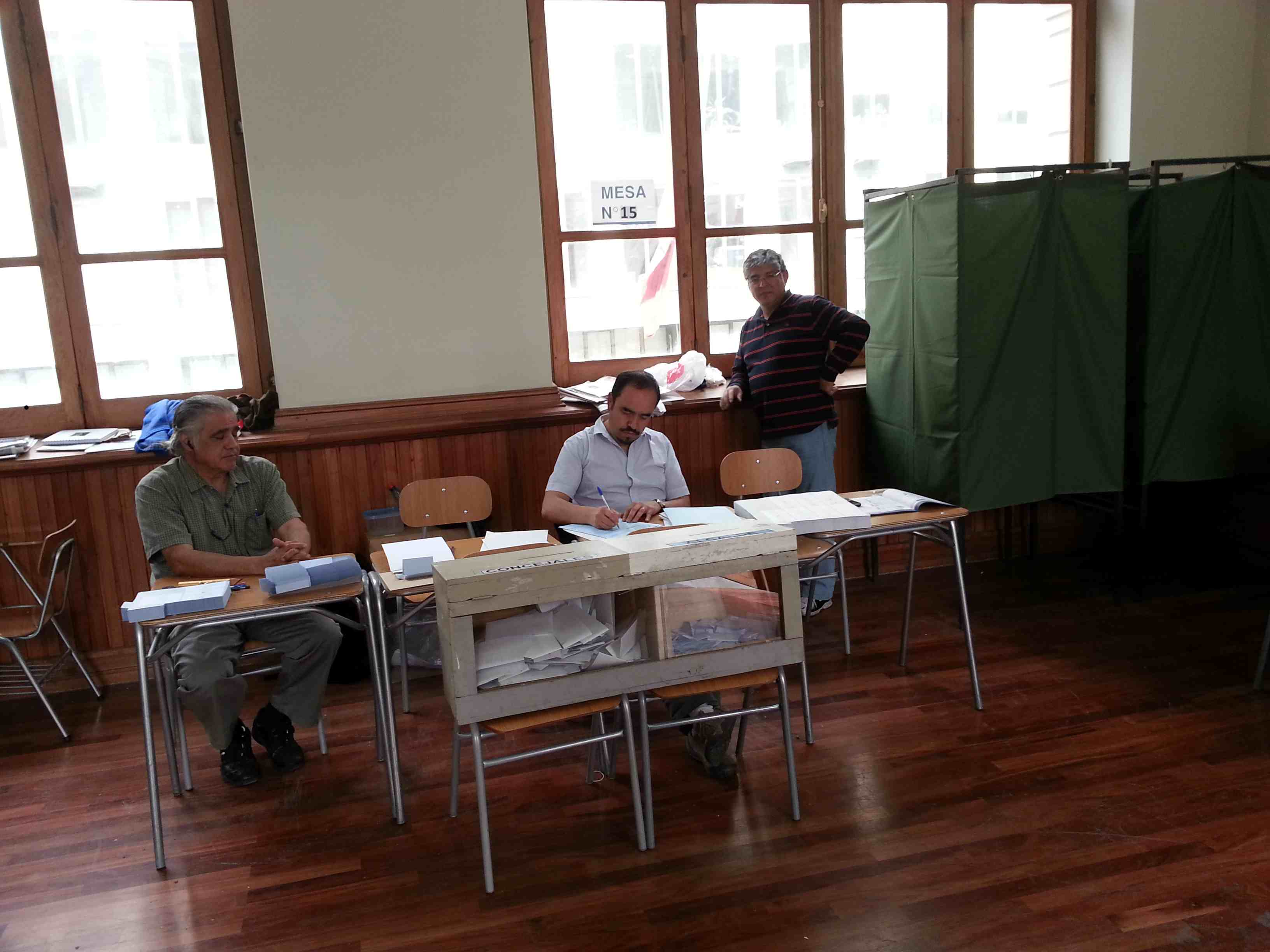 Por tercera vez me tocó la (mala) suerte de ser nombrado vocal en la mesa 15 de Santiago centro. De los cinco vocales asistieron cuatro, dos de ellos sin experiencia. Uno de los vocales neófitos había jubilado, y trabajaba ocasionalmente como guardia o como vendedor de feria. Se quejaba de alta presión y de diabetes, pero este achaque debe haber sido leve. El otro vocal nuevo llegó enfermo, quejándose de dolor en todas las extremidades, incluso en los dedos de las mano. Fui elegido Presidente, lo que afortunadamente es un trabajo con menos obligaciones que en el pasado: ya no es necesario ir al día siguiente a la elección a entregar documentos a las oficinas electorales.