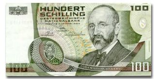 Billete austriaco de 100 schillings con la imagen de Böhm-Bawerk